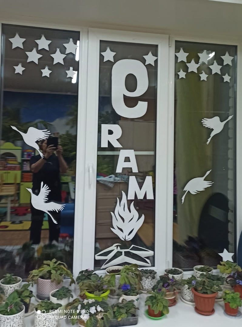 Это - удивительная акция, которая сближает людей в великий для нас день.????Наши воспитанники приняли участие в акции. Украсили окна своих групп узнаваемыми фигурами, поздравительными надписями, вечным огнем, салютом и рисунками. Тем самым мы смогли выразить, благодарность всем тем, кто подарил нам мирное небо.✨????????????????