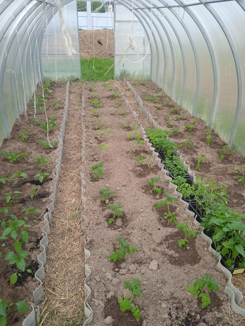 Первый урожай в теплице сняли. Настала пора высадить рассаду перцев и томатов . Нашлось местечко и для огурцов. Посеяли цветы.