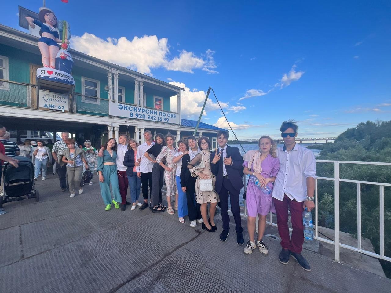 ТикТок вечеринка для выпускников продолжилась в славном городе Муроме! Часовая прогулка на теплоходе по реке Оке дала возможность полюбоваться красотами природы, набережной, вантовым мостом. Нашей большой компании было весело! Несмотря на присутствие других пассажиров ребята пели песни, танцевали, играли и, конечно, делали памятные фото и видео.