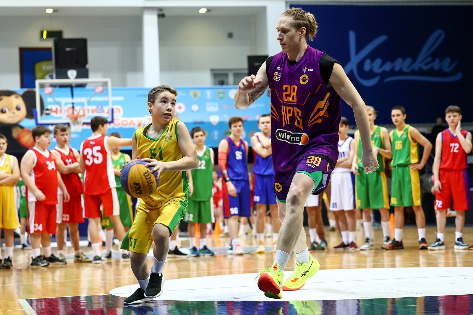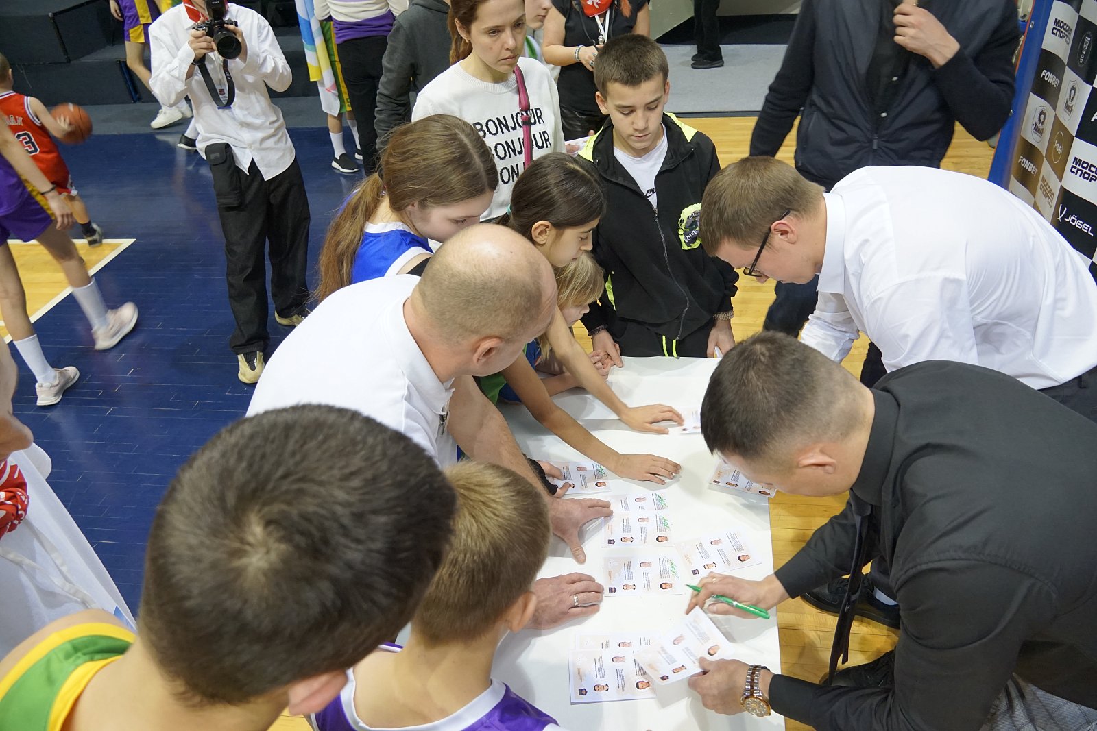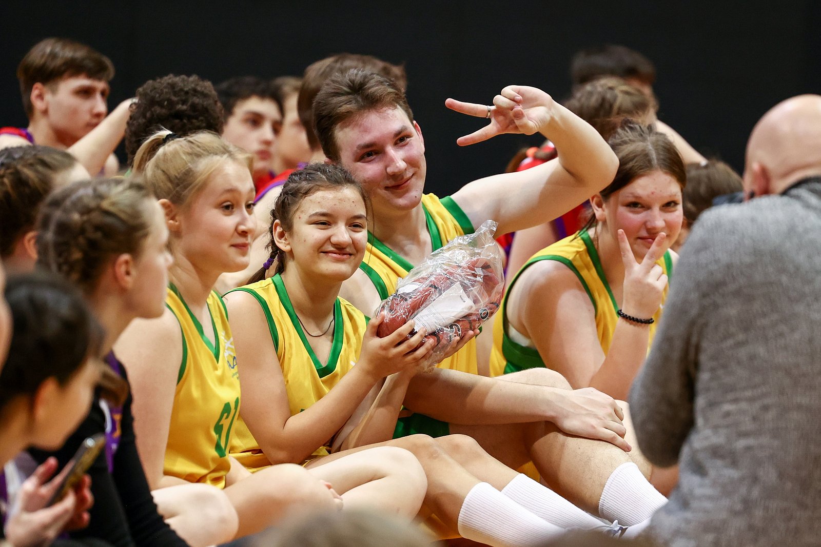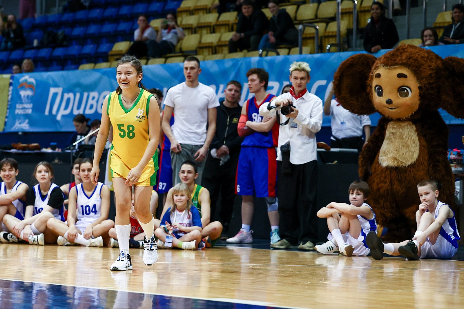 Каждый имел возможность взять автограф и сделать фото на память. Они зарядили участников энергией и подарили массу положительных эмоций. Чемпионы данкеры Алексей и Мирослав показали мастер- класс по забиванию мяча в прыжке сверху. Поздравить и поддержать наших ребят приехали танцевальный коллектив Аллы Духовой "Тодес", школа спортивного танца ФОКа" Химки".