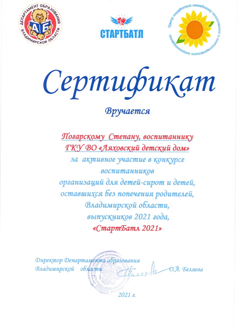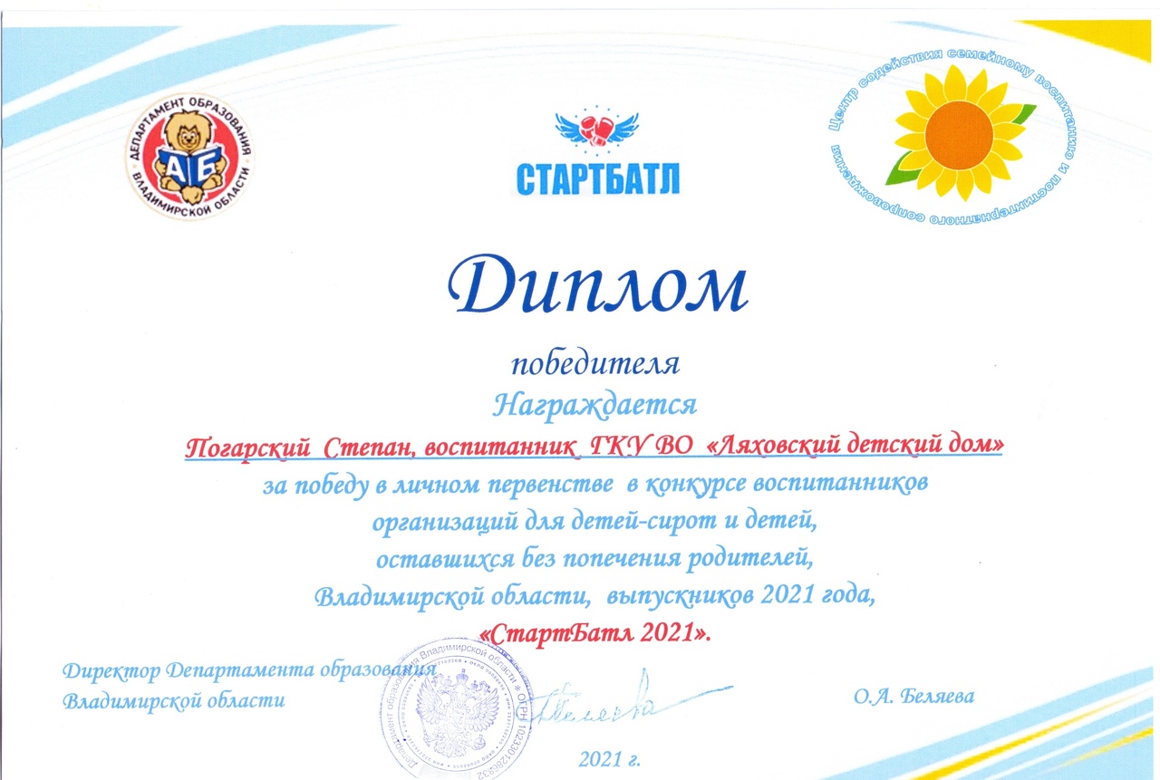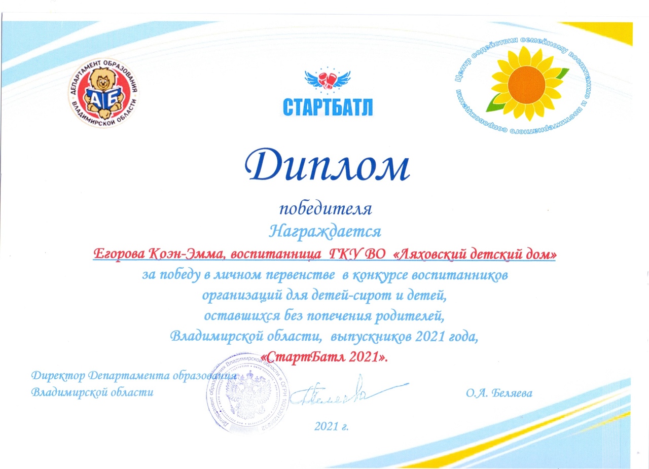 Каждый участник конкурса награжден сертификатом за активное участие, Степан и Эмма удостоены дипломами победителей в личном первенстве. Вручены памятные подарки и кубок 1 место "СтартБатл-2021"