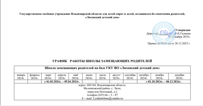 График работы школы замещающих родителей.